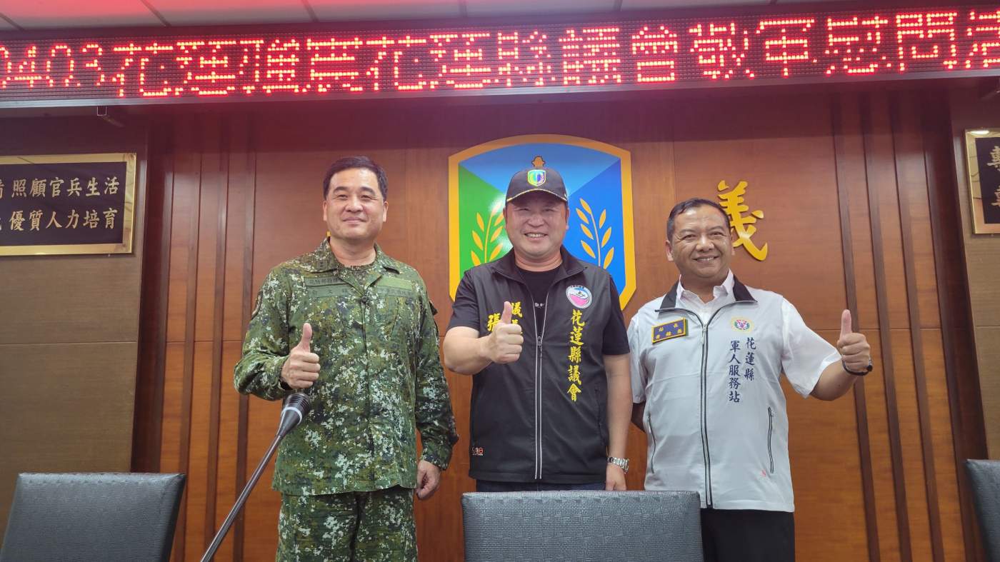 花蓮縣議會議長張峻表示,非常感謝俞指揮官在第一時間,就帶領國軍弟兄深入災區,執行救援與救災的任務,英勇的國軍弟兄永遠站在保家衛國的第一線,張峻今天特別前來慰勞我們國軍弟兄,並致贈10萬元的加菜金。曾記麻糬董椿霳董事長,也準備了500份的花蓮薯、花蓮芋請張峻轉交給國軍弟兄享用,再次感謝陸軍花東防衛指揮部對國家的保衛,以及對人民生命財產的救援和保護。