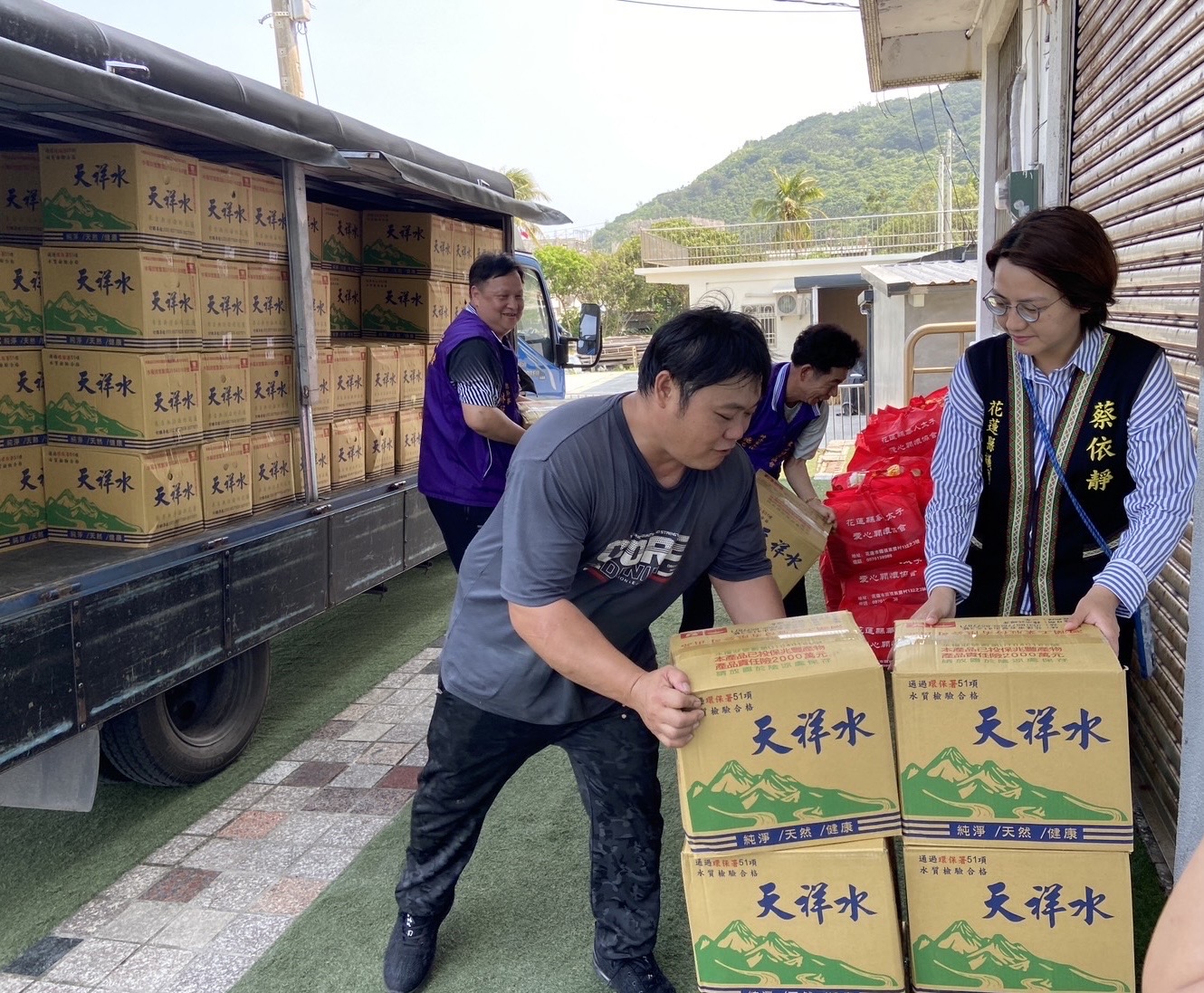 豐濱鄉磯崎部落與新社部落,因0403震災加上上千次的餘震,簡易自來水的水源因而嚴重毀損,接管也遭掩埋和破壞,導致磯崎與新社部落無乾淨的民生用水可用,經光豐地區農會豐濱辦事處主任陳彥衛向花蓮縣議會議長張峻求援後,張峻議長偕同蔡依靜議員與台灣華人太子愛心關懷協會理事長施鳳嬌,將飲用水300箱,愛心物資300份,於4/29日下午直接把物資運抵災區,並集中在豐濱鄉新社活動中心、磯崎活動中心及光豐地區農會豐濱辦事處等三處,進行發放作業。