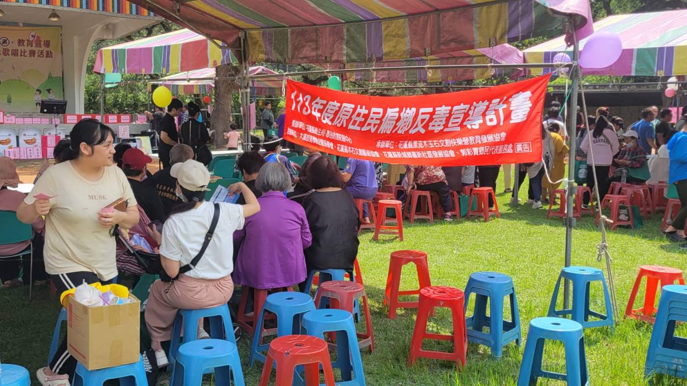 113年度議長盃防癌、毒、教育宣導暨卡拉ok歌唱比賽5/4日在銅門國小熱烈展開,這場活動,宣導方式多元,根拿阿魯愛鄉關懷協會為讓部落民眾對於衛教與反毒、詐騙等行為有更清楚的概念,結合卡拉OK比賽,吸引不少民眾參與,出席的來賓有程美蓮議員、議會秘書郭怡廷、縣府中區主任賴錦昌、吉安鄉公所專員陳柏帆、銅門社區發展協會理事長王明成、銅門村長葉清賢等。