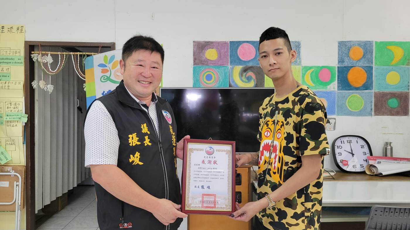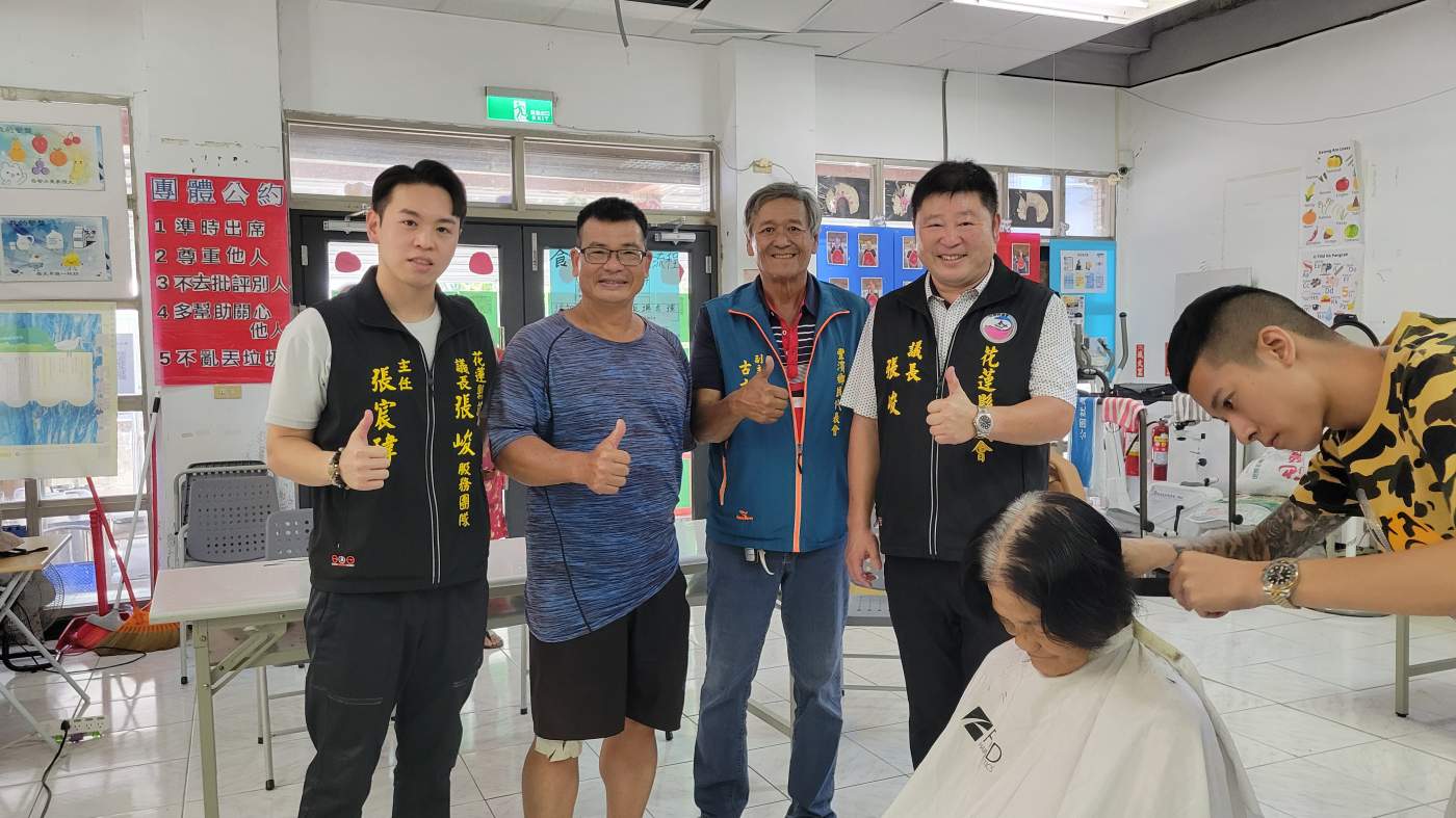花蓮縣議會張峻議長表示,特別在豐年祭與父親節前夕,媒合髮型設計團隊於豐濱鄉辦理義剪活動,感謝渲染hair salon髮型設計師徐英翔偕同設計團隊,上午前來豐濱鄉貓公部落為鄉親義剪頭髮,更感謝豐濱鄉民代表會副主席古方新與豐濱社區發展協會理事長吳建安對今天活動的全力協助。