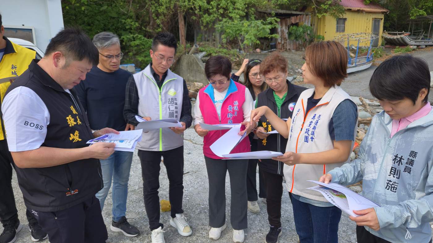 康芮颱風過後由於搶修進度遲緩,眼見當地漁民愁容滿面,無以為繼,在蔡依靜Lamen Panay議員與張峻議長討論後,遂於11/24日下午由張峻議長帶隊,偕同蔡依靜Lamen Panay、鄭寶秀、黃玲蘭、簡智隆、胡仁順、林則葹等議員及陳柏錩代表,特別前往現場進行會勘,當地漁會代表潘銀華與漁民當場向議員們表達他們無奈的心聲,期盼盡快獲得改善。